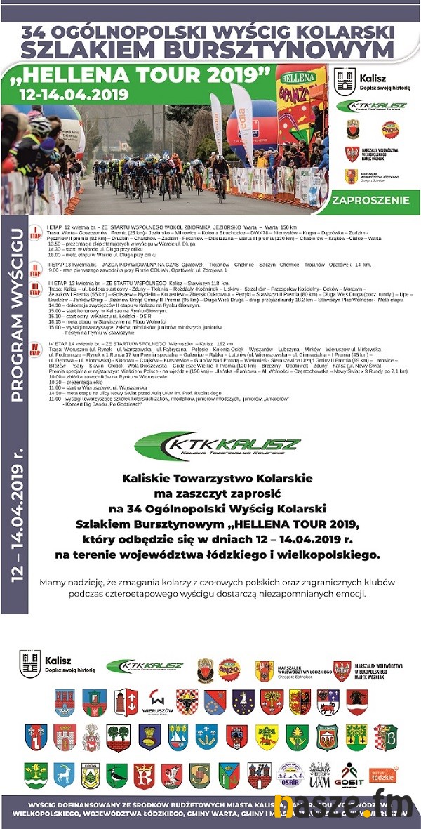 Dziś startuje 34. Ogólnopolski Wyścig Kolarski Szlakiem Bursztynowym "Hellena Tour 2019". Trasa będzie wiodła także przez nasz region. Wyścig odbywa się od 12-14 kwietnia.