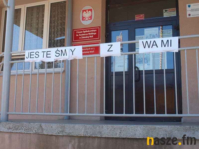Dziś uczniowie pierwszych klas I Liceum Ogólnokształcącego im. Kazimierza Jagiellończyka w Sieradzu pojawili się w murach szkoły, żeby wesprzeć strajkujących nauczycieli. Nie zabrakło słodkości i słów otuchy. Nauczycieli wspierają także uczniowie ze Zduńskiej Woli.