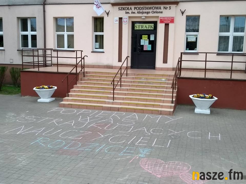 Podobne napisy pojawiły się również m.in. przed szkołami podstawowymi o numerach: 5, 9 czy 10 w Zduńskiej Woli. Przed zduńskowolskim sądem odbywają się także cykliczne wiece poparcia dla strajkujących nauczycieli.
