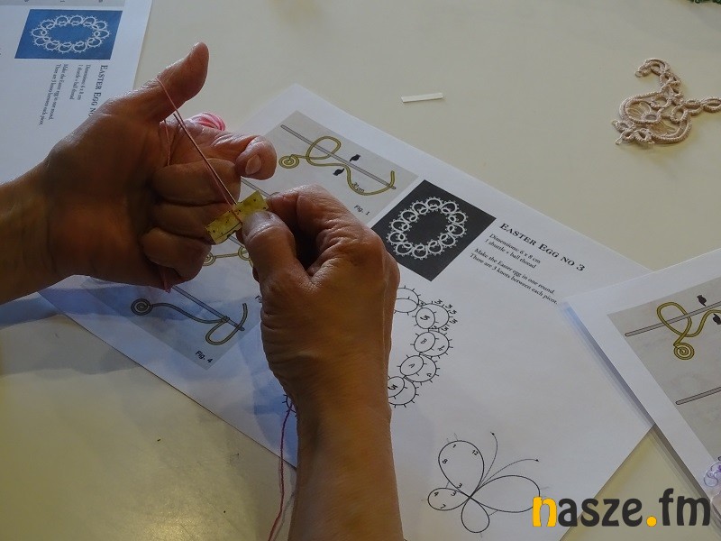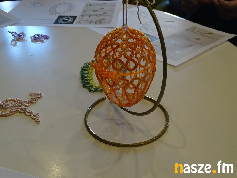 - Frywolitka to delikatna koronka. Mogą być tym ozdabiane jajka, można stworzyć płaskie jajka albo jajeczka 3D. Możemy wykorzystać frywolitkę jako ozdobne serwetki. To się wydaje trudne, ale dla chcącego nic trudnego. Potrzeba dużo cierpliwości i zaangażowania. Dzisiejsze uczestniczki chcą się nauczyć i chcą coś fajnego stworzyć- mówi prowadząca warsztaty Anna Curuł