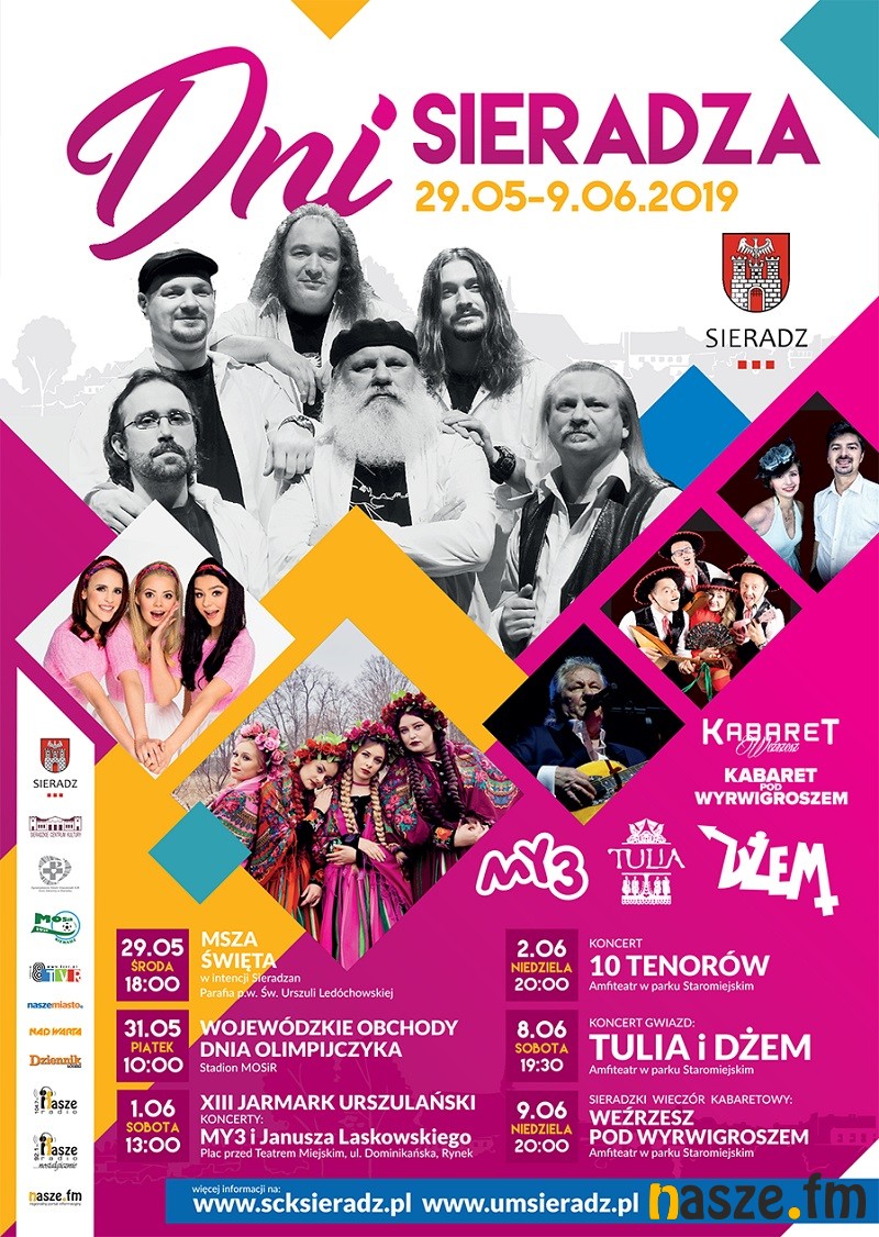 Podczas tegorocznych Dni Sieradza nie zabraknie sportowych wrażeń, Jarmarku Urszulańskiego, kabaretów i oczywiście muzyki. Muzycznymi gwiazdami będą Tulia i Dżem. Dni Sieradza 2019 zakończą 9 czerwca.