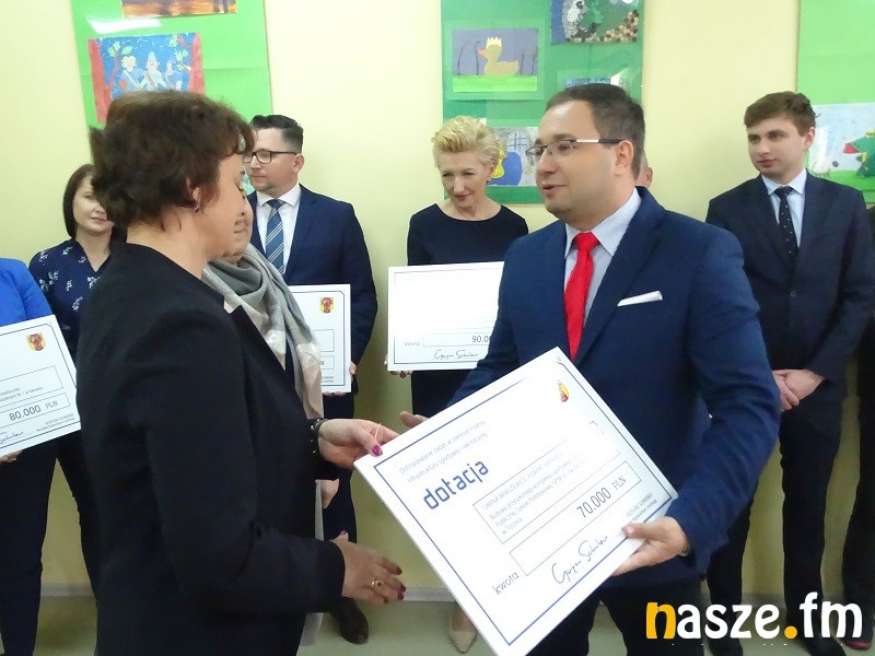 - Oddaliśmy w zeszłym roku boisko, a teraz chcemy poprawić stan techniczny naszej sali gimnastycznej. Poprawimy tan stan nawierzchni, pojawią się składane kosze i bramki do piłki ręcznej. Zmodernizowany też będzie system do piłki siatkowej. Chcemy to zadanie zrealizować w tym roku do października - tłumaczył Michał Kluba, dyrektor Zespołu Szkół Ponadgimnazjalnych nr 1 w Sieradzu. Ta placówka to jeden z kilkunastu beneficjentów, którzy odbierali dziś symboliczne czeki. Szkoła otrzymała 80 tys. zł dotacji.