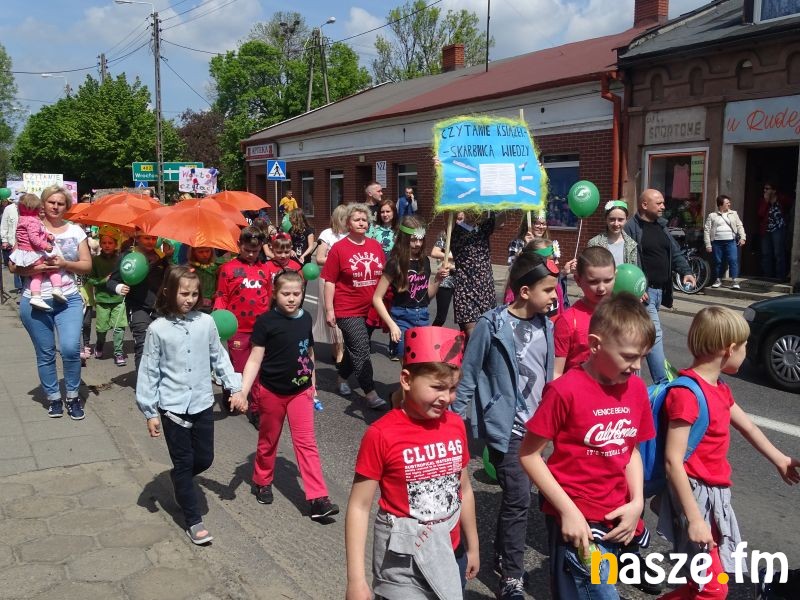 Ten kolorowy dzień z książkami w tle rozpoczął wesoły korowód ulicami miasta, nie zabrakło bajkowych strojów czy transparentów zachęcających do czytania. Oprócz wcześniej wspomnianych pisarzy do Złoczewa przybyli także goście z innych szkół w naszym regionie, to wszystko by wspólnie propagować czytelnictwo. Wśród zaproszonych pisarzy była Renata Piątkowska, posłuchajcie fragmentu przedstawienia, w którym dzieci opisują jedną z książek autorki.