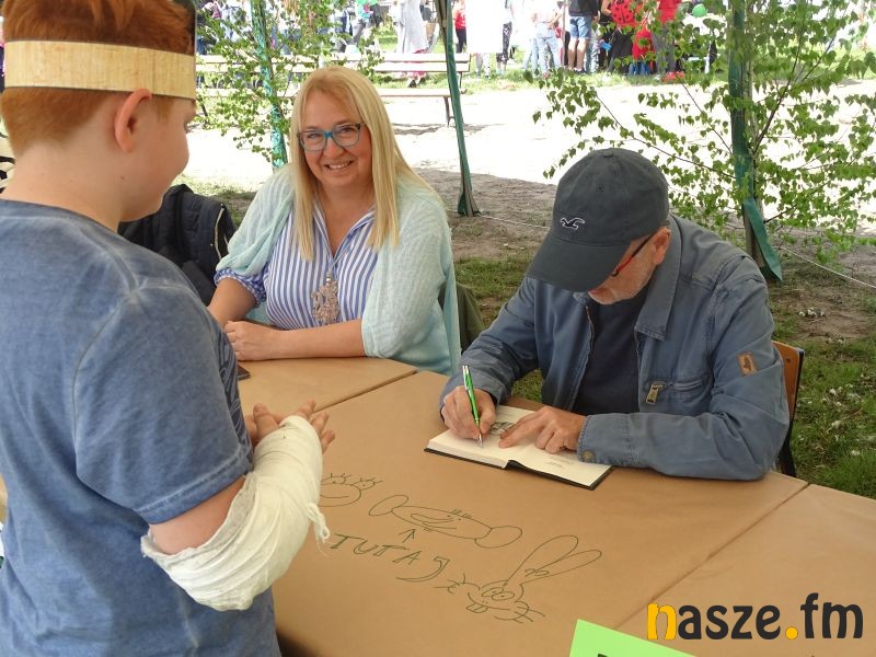 Kolejnym z autorów, który zasiadł na drewnianym tronie przygotowanym na scenie złoczewskiego amfiteatru był Andrzej Marek Grabowski. Dzieci opowiedziały o jego książce pod tytułem "Instrukcja obsługi pieska Jacósia".