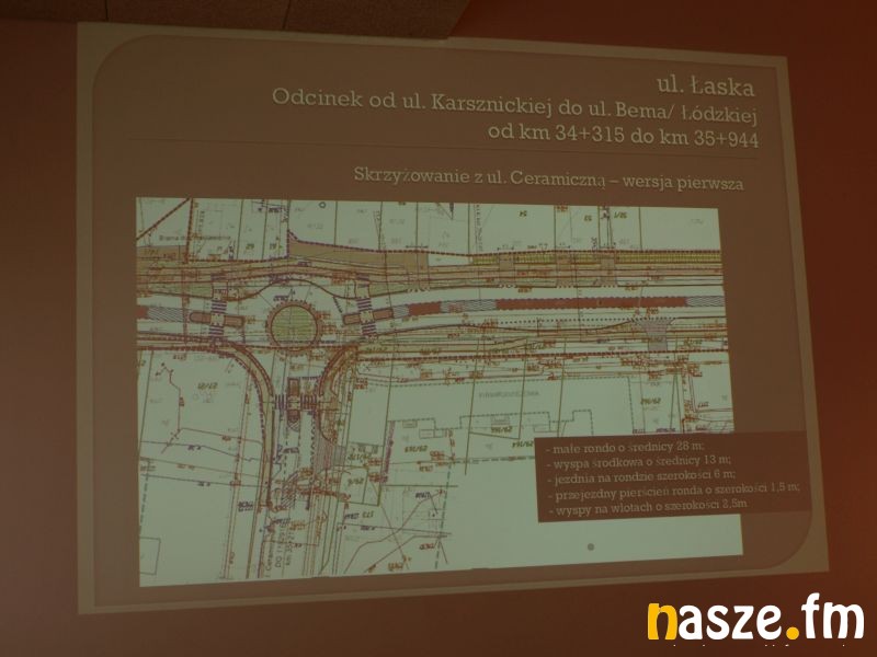 - Skrzyżowanie ul. Łaskiej z ul. Ceramiczną – na wniosek mieszkańców zaprojektowano skrzyżowanie w formie ronda jednopasowego, zamiast pierwotnie proponowanego skrzyżowania zwykłego