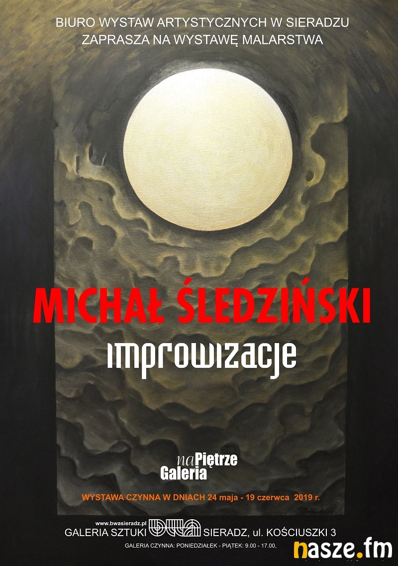 Biuro Wystaw Artystycznych w Sieradzu zaprasza 23 maja na wernisaż wystawy malarstwa Michała Śledzińskiego.“Improwizacje” to zbiór różnych tematycznie prac z pogranicza abstrakcji, malarstwa geometrycznego i symbolizmu. Wystawę będzie można oglądać do 19 czerwca.