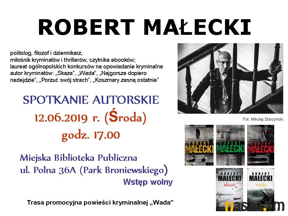 Robertem Małeckim jest politologiem, filozofem i dziennikarzem, miłośnikiem kryminałów i thrillerów oraz czytnika ebooków. Autor jest laureatem ogólnopolskich konkursów na opowiadanie kryminalne. Spod jego pióra wyszły takie książki jak: "Skaza", "Wada", "Najgorsze dopiero nadejdzie", "Porzuć swój strach", "Koszmary zasną ostatnie".