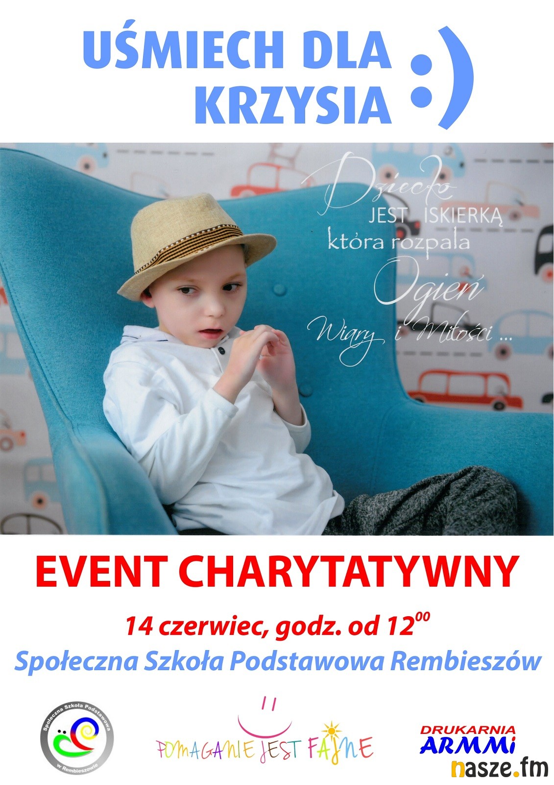 W najbliższy piątek, 14 czerwca, na terenie Społecznej Szkoły Podstawowej w Rembieszowie (gm. Zapolice) odbędzie się impreza charytatywna pod hasłem "Uśmiech dla Krzysia". Dochód z wydarzenia zostanie przeznaczony na leczenie i rehabilitację Krzysia Smarzycha, który cierpi na mózgowe porażenie dziecięce.