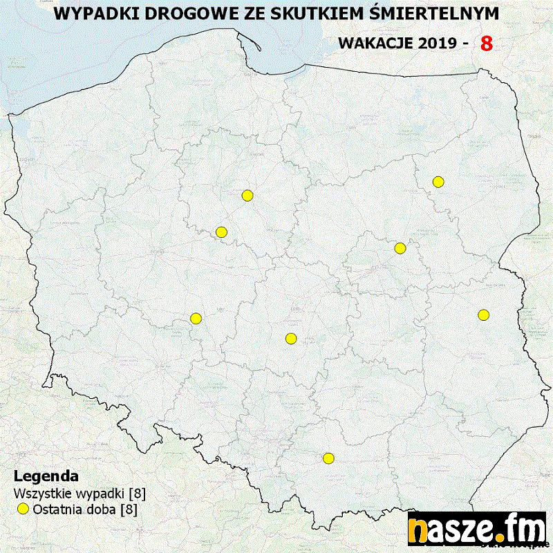 Liczby, tabele, czy porównania nie zawsze przemawiają do wyobraźni kierowców i pieszych. Dlatego też każdego dnia przez cały okres wakacji Policja prezentuje bieżącą liczbę i lokalizację wypadków drogowych ze skutkiem śmiertelnym z ostatniej doby oraz od początku wakacji. Niestety z każdym dniem mapa będzie coraz mniej przejrzysta, ponieważ przybywać będą nowe punkty.