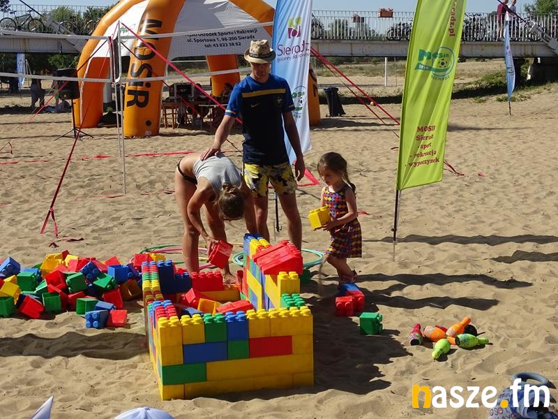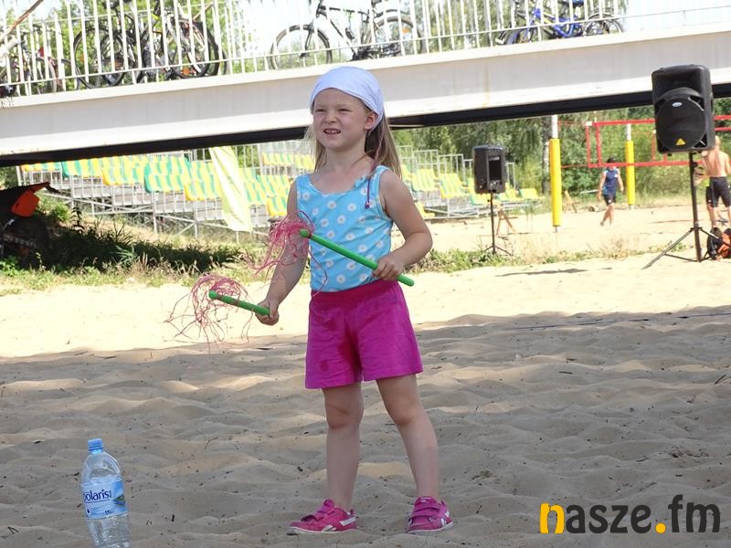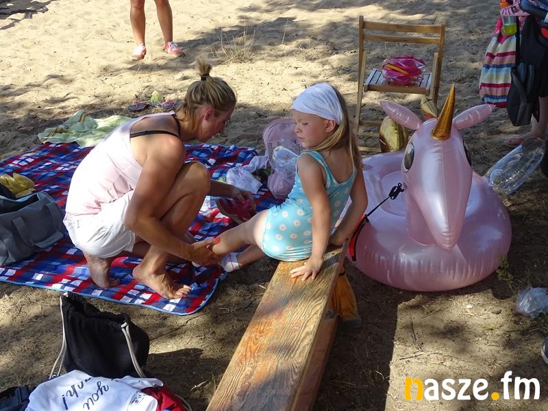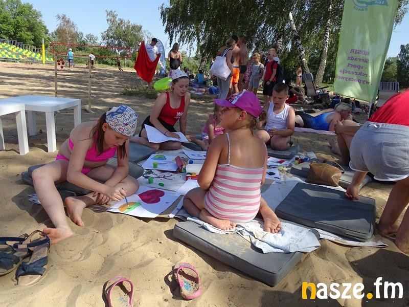 Ponadto aktywnie czas na plaży można było spędzić, biorąc udział w zajęciach fitness, a także w treningu nordic walking. Nie zabrakło także atrakcji dla najmłodszych. Były zamkowe dmuchańce, a także strefa zabaw dla dzieci, którymi zajmowały się animatorki MOSiR-u. Pogoda dopisała, także nie zabrakło osób wypoczywających na sieradzkiej plaży.