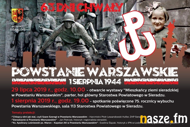 W ramach obchodów powiatowych w poniedziałek o 10:00 w starostwie otwarta zostanie wystawa Mieszkańcy ziemi sieradzkiej w Powstaniu Warszawskim.