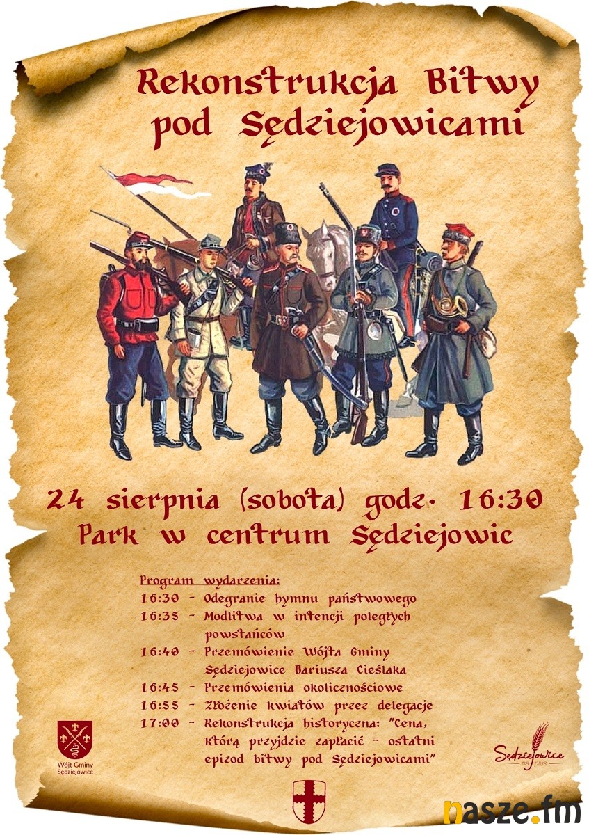 - 17:00 - Rekonstrukcja historyczna "Cena, którą przyjdzie zapłacić - ostatni epizod bitwy pod Sędziejowicami"