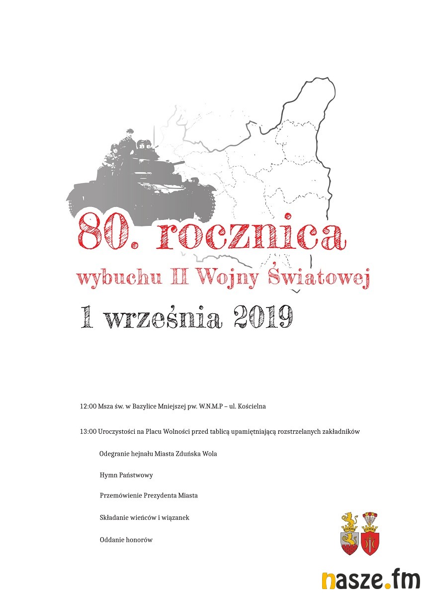 Dziś w Zduńskiej Woli odbędą się obchody 80. rocznicy wybuchu II wojny światowej. Główna część uroczystości tradycyjnie odbędzie się na placu Wolności.