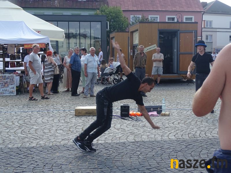 Odwiedzający sieradzki rynek mogli kibicować też zawodnikom biorącym udział w zawodach siłowaniu na rękę, a także - obserwować występy akrobatów, a nawet uczestniczyć w części ich pokazu. Na rynku pojawiała się również grupa mimów, a wszystkim przygrywał na akordeonie Krzysztof Raczyński. Na koniec koncert dała kapela Pożarniki.