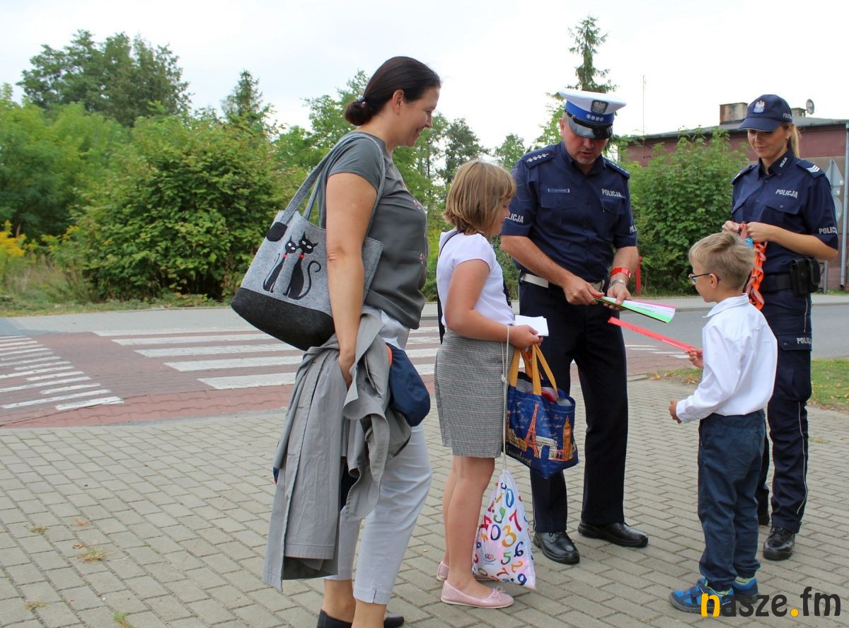 Początek roku szkolnego to zwiększenie natężenia ruchu pieszych i pojazdów w rejonach szkół. Roztargnienie i pośpiech mogą przyczyniać się do zagrożeń bezpieczeństwa, zwłaszcza dzieci. Szczególnie zagrożoną grupą uczestników ruchu drogowego są piesi i kierujący jednośladami. Ciemne ubrania, bluzy z kapturami utrudniają oraz ograniczają widoczność. Policjanci wręczali najmłodszym opaski odblaskowe zaznaczając przy tym jak istotny wpływ ma ich używanie.