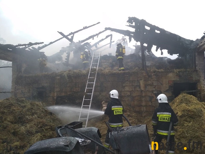 W środku spaleniu uległy też maszyny, w tym traktory i przyczepy. W działaniach brał m.in. udział strażacki podnośnik.