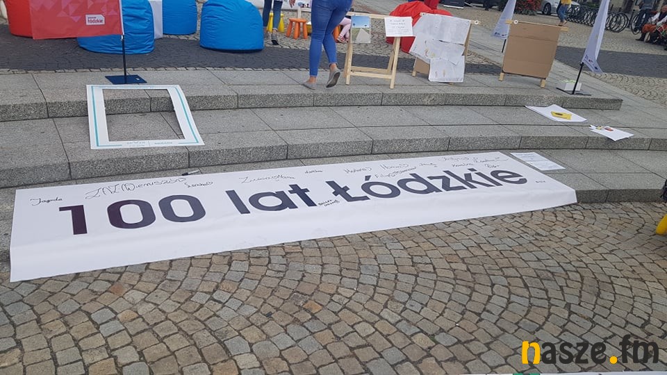 Z okazji 100-lecia województwa łódzkiego symboliczne pierwsze kawałki tortu pokroili Andrzej Górczyński i Karolina Bielawska.
