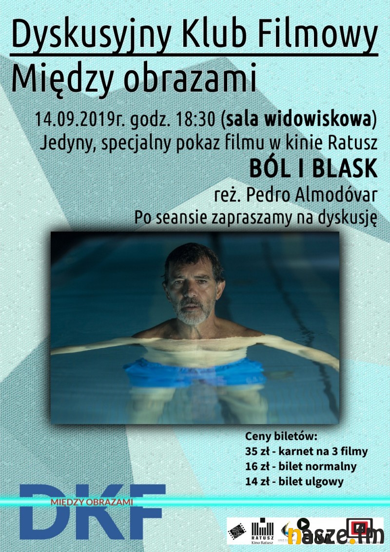 Pierwsze weekendowe spotkanie z DKF-em odbędzie się w sobotę w sali widowiskowej Kina Ratusz. Na 18:30 zaplanowano jedyny pokaz filmu Ból i blask w reżyserii Pedro Almodovara. Po seansie tradycyjnie dyskusja. Bilety w cenie 16 zł normalny (14 zł ulgowy, 35 zł karnet na 3 filmy).