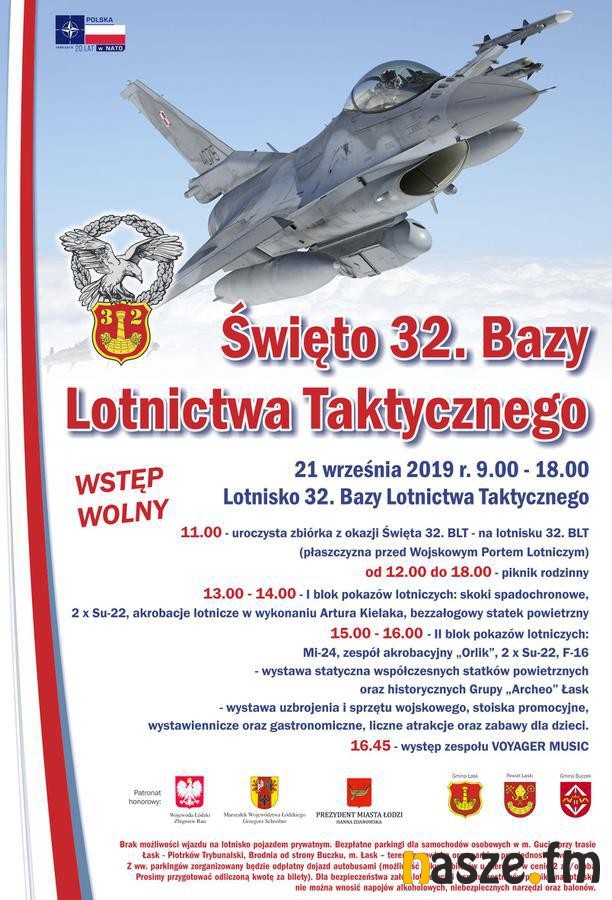 W sobotę na terenie 32. Bazy Lotnictwa Taktycznego w Łasku odbędzie się piknik lotniczy. W związku z powyższym mogą wystąpić utrudnienia w ruchu drogowym na trasie S8.