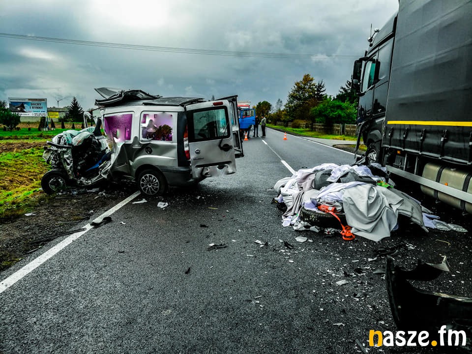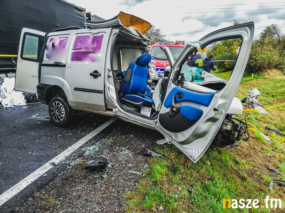 Przed godz. 16 w kierujący samochodem marki Fiat Doblo z nieustalonych przyczyn zjechał na przeciwległy pas ruchu i doprowadził do czołowego zderzenia z ciężarówką z naczepą marki Mercedes.