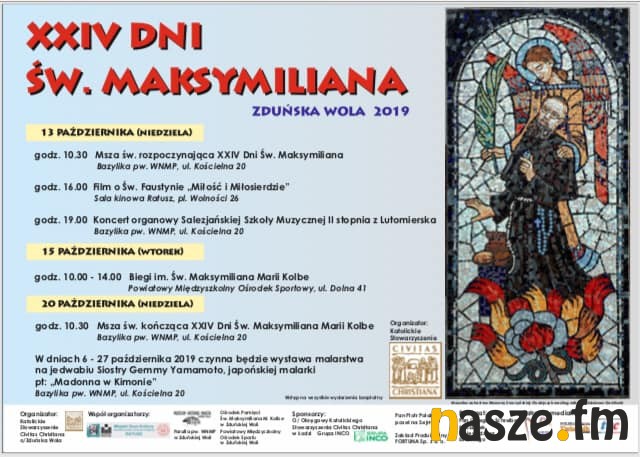 W dniach 13-20 października w Zduńskiej Woli odbędą się obchody XXIV Dni św. Maksymiliana, patrona miasta. Głównym organizatorem zaplanowanych wydarzeń jest zduńskowolski oddział Katolickiego Stowarzyszenia Civitas Christiana.