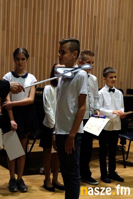 Zanim jednak na ramieniu każdego ucznia klasy pierwszej spoczął wielki klucz wiolinowy, uczniowie ci wystąpili po raz pierwszy na scenie sali koncertowej wykonując wspólnie piosenkę.