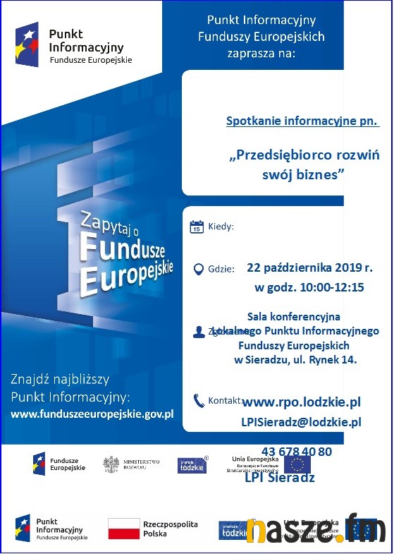 Punkt Informacyjny Funduszy Europejskich w Sieradzu zaprasza na spotkanie informacyjne Przedsiębiorco rozwiń swój biznes.