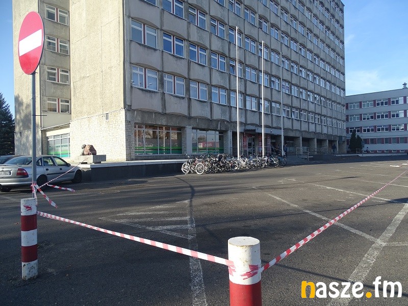 Z uwagi na fakt, że prowadzone będą roboty budowlane wysokościowe, teren wokół starostwa musi zostać ogrodzony. Dlatego konieczne jest odgrodzenie części parkingu przy budynku A.