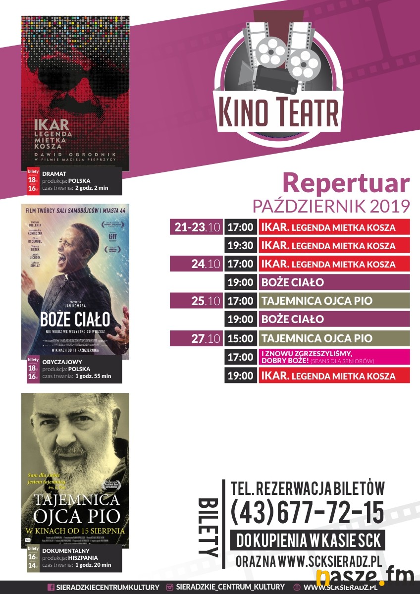 Nagrodzony Srebrnym Lwem na Festiwalu Polskich Filmów Fabularnych "Ikar. Legenda Mietka Kosza", przegląd "Kadry wyzwolone - kino i cenzura w okresie PRL" czy Seans dla seniorów i film "I znowu zgrzeszyliśmy, dobry Boże!" to filmy i wydarzenia na które zapraszają Kino Ratusz i Sieradzkie Centrum Kultury.