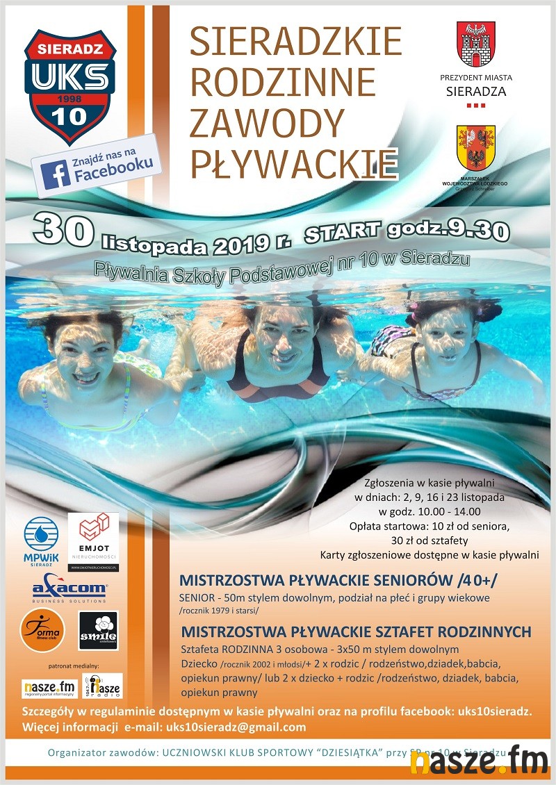 O 9:30 w Pływalni Szkoły Podstawowej nr 10 w Sieradzu rozpoczną się Sieradzkie Rodzinne Zawody Pływackie. Organizatorzy zapewniają liczne atrakcje zarówno dla najmłodszych, jak i nieco bardziej zaawansowanych zawodników.