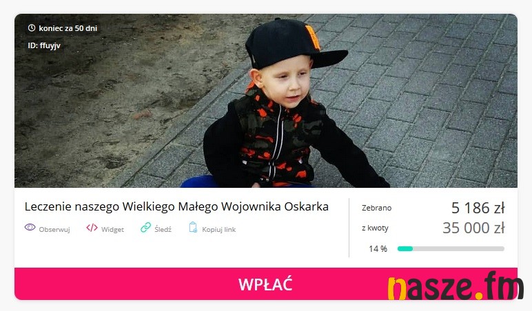 Nam już brakuje funduszy, dlatego też zorganizowaliśmy zbiórkę dla synka (TUTAJ). Trwa również licytacja na Facebooku (TUTAJ).