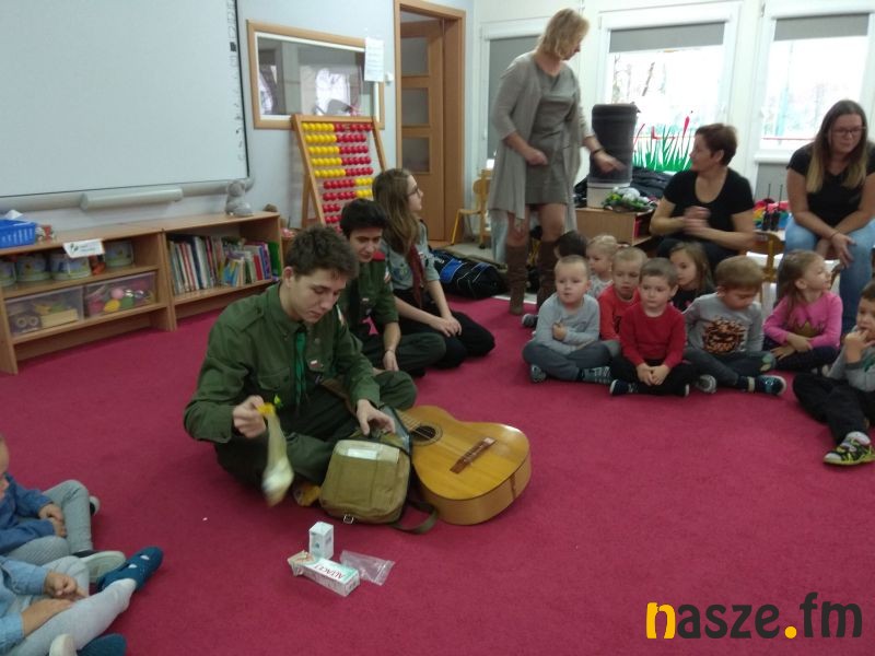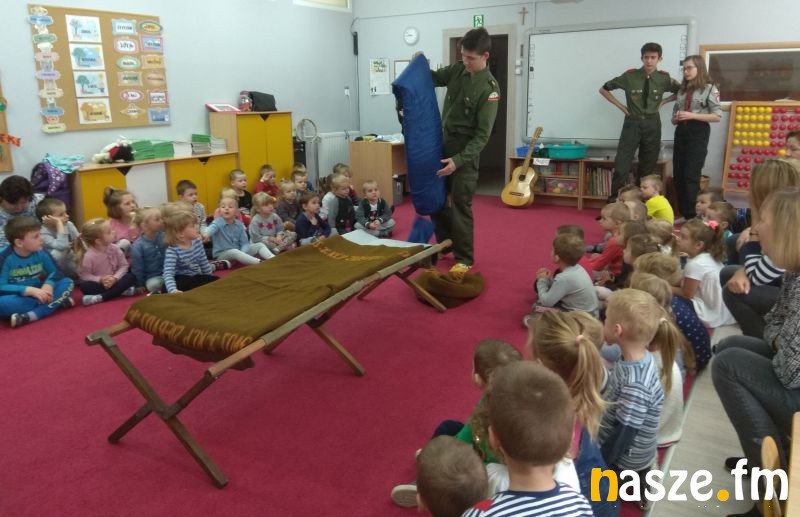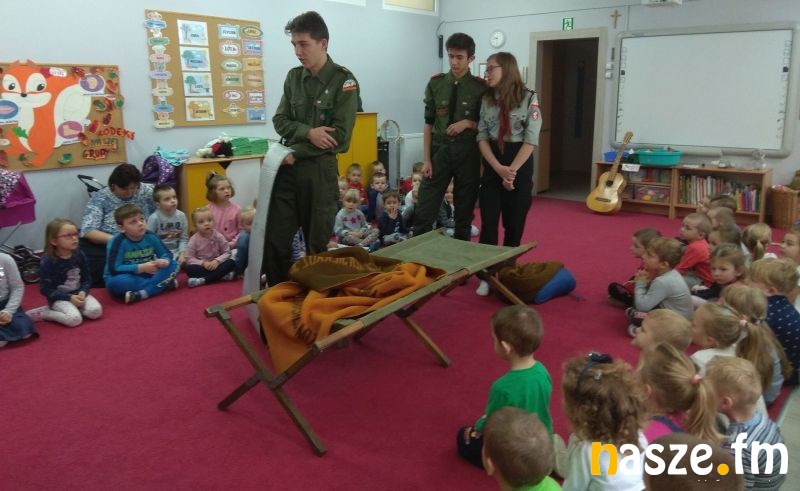 Harcerze przybliżyli najmłodszym wychowankom podstawowe obowiązki i zadania harcerzy. Zaprezentowali swoje mundury wyjaśniając dzieciom, co oznaczają kolory oraz znajdujące się na nich naszywki, a także pokazali podstawowy obozowy sprzęt harcerza.