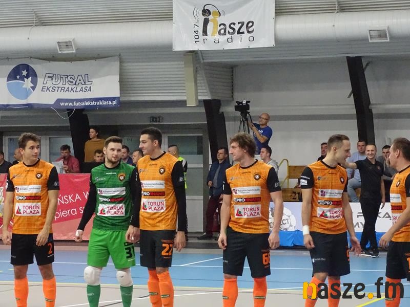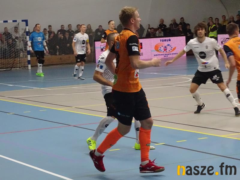 Goście zaczęli z impetem i już w 3 minucie objęli prowadzenie. Gola z bliska zdobył Mateusz Waszak. Dariusz Słowiński był w stanie musnąć piłkę, ale nie uchronił jej przed wpadnięciem do siatki. Toruń atakował, a bramkarz Gatty kilka razy ratował skórę swojej drużynie. Kocury także nie pozostawały dłużne. Leonardo Mieli starał się z bocznej strefy parkietu przymierzyć w samo okienko, ale piłka nie znalazła drogi do bramki. Kilka minut później strzelał Norbert Dregier, golkiper odbił, do dobitki doszedł Mieli, ale ponownie refleksem popisał się Mateusz Iwański. Na 4 minuty przed końcem pierwszej połowy doskonałą sytuację na podwyższenie wyniku, zmarnował Tomasz Kriezel, który z górnej piłki przestrzelił nad bramką Gatty. Chwilę później Kriezel poprawił swoją skuteczność. W 19 minucie zawodnik z Torunia otrzymał podanie od Kacpra Zboralskiego i wślizgiem wpakował piłkę do bramki. Pierwsza połowa zakończyła się wynikiem 0:2.