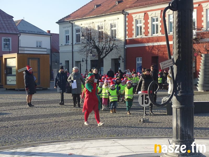 Część przedszkolaków rozpoczęła rajd od bram miasta przy Kolegiacie, w kierunku rynku. Każda grupa rajdowa byłą pod opieką przewodnika z PTTK, który krótko opowiedział historię Sieradza związaną z bramami miasta oraz rolą rynku dawniej i dziś. W drodze do rynku dzieci dowiedziały się też o ważnych miejscach Sieradza. Na rynku czekał Mikołaj, dla którego dzieci zaśpiewały też piosenki: