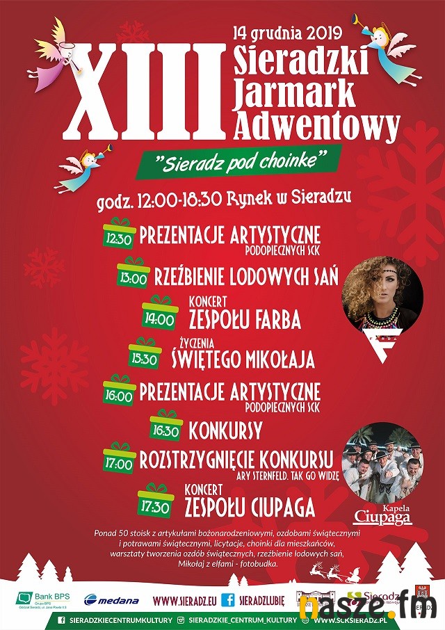Jak co roku nie zabraknie także występów artystycznych. O muzyczne wprowadzenie w czas świąt zadbają podopieczni Sieradzkiego Centrum Kultury oraz zespół "Farba" i "Ciupaga". Jarmark odwiedzi również Święty Mikołaj a uczniowie z sieradzkich szkół, którzy wzięli udział w konkursie filmowym "Ary Sternfeld. Tak Go widzę" poznają jego zwycięzcę.