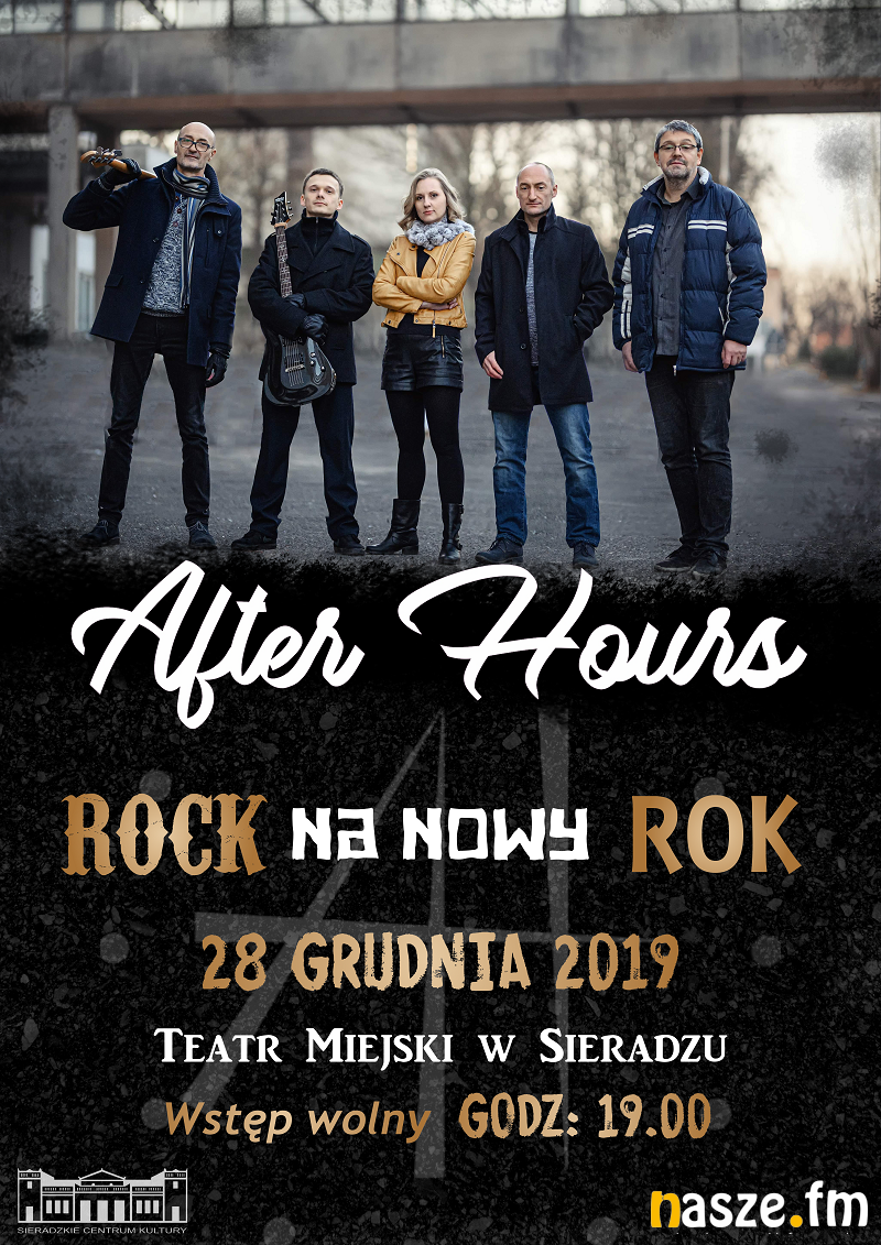Dziś, 28 grudnia, w Teatrze Miejskim w Sieradzu odbędzie się koncert zespołu After Hours "Rock na Nowy Rok". Istnieją od 2009 roku, grają pop rock. Podczas koncertu usłyszycie utwory zespołów Toto czy The Beatles we własnych aranżacjach oraz kompozycje własne.