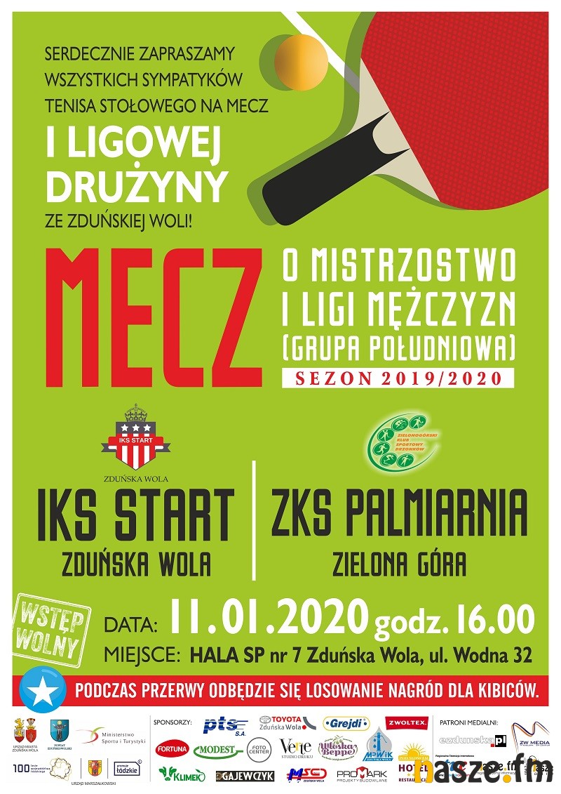 Klub IKS START Zduńska Wola zaprasza na spotkanie 11. kolejki I ligi tenisa stołowego. Jutro w hali Szkoły Podstawowej nr 7 w Zduńskiej Woli, START zagra z ZKS-em Palmiarnia Zielona Góra II. Początek spotkania o 16:00.