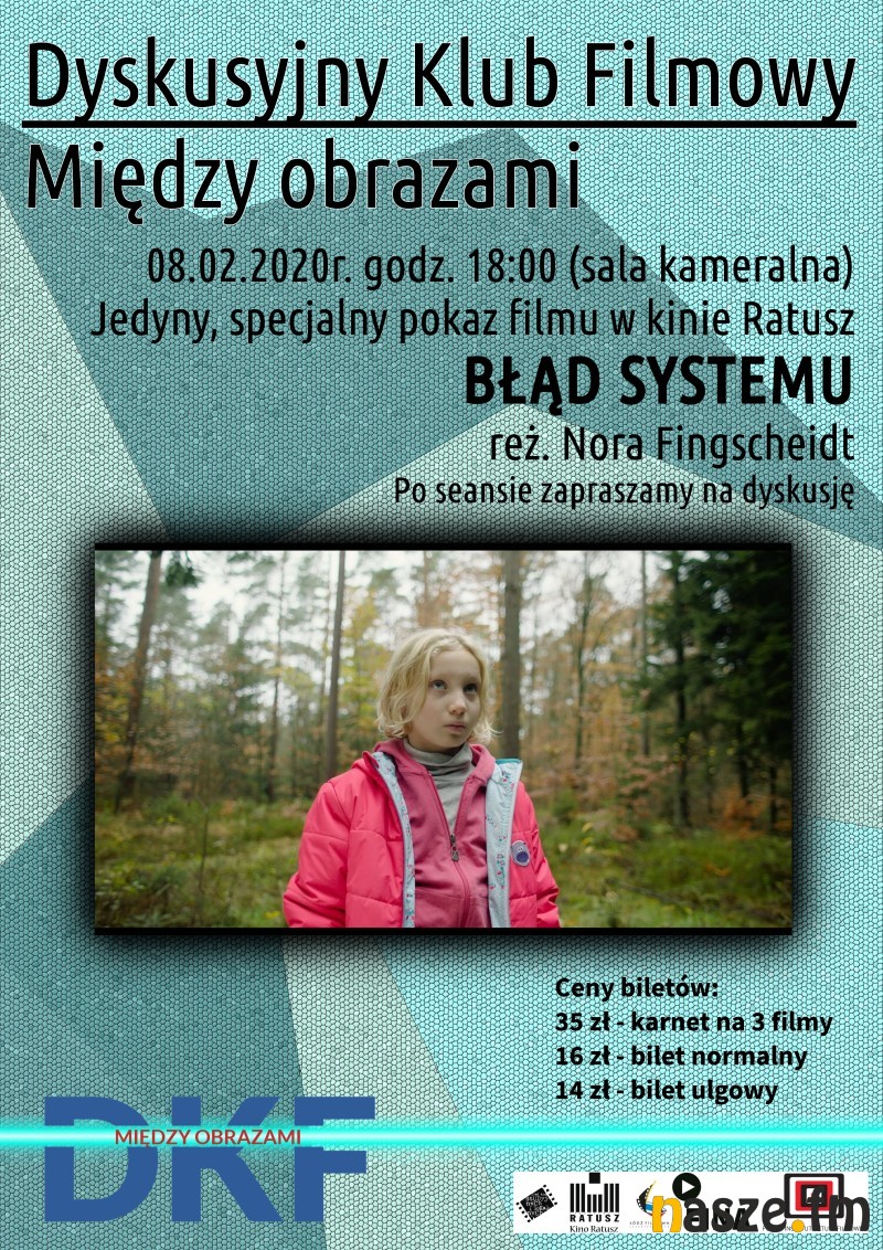 Kino Ratusz w Zduńskiej Woli zaprasza do wspólnego dyskutowania, komentowania, dzielenia się emocjami po każdym klubowym seansie. Tym razem Dyskusyjny Klub Filmowy "Między obrazami" poleca film "Błąd systemu".