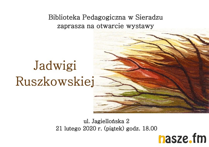 - Prezentowane na naszej wystawie obrazy i gobeliny Jadwigi Ruszkowskiej to przemyślany wybór dokonany przez autorkę z jej dorobku twórczości plastycznej obejmującej malarstwo, rysunek i tkaninę. Artystka-amatorka jest od kilku lat studentką Uniwersytetu Trzeciego Wieku w Sekcji Rysunku i Malarstwa, uczestniczką plenerów, warsztatów i wystaw, w tym ubiegłorocznej wystawy indywidualnej w muzeum w Warcie. W latach 80-tych zaczęła zgłębiać tajniki gobelinu. Pani Jadwiga Ruszkowska z zawodu jest leśnikiem. Po przejściu na emeryturę i przeprowadzce na wieś poświęca wolny czas także na malowanie. Próbuje różnych technik – olej, akryl, akwarela, techniki mieszane. Sztuka jest dla niej hobby, ale też sposobem realizowania twórczych potrzeb i budowania więzi z innymi ludźmi. - zapowiadają organizatorzy