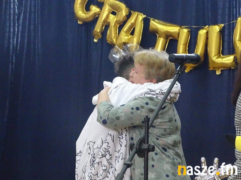 Społeczność szkolna przywitała Marcina bardzo hucznie, nie zabrakło owacji na stojąco, prezentów i wielu miłych słów: