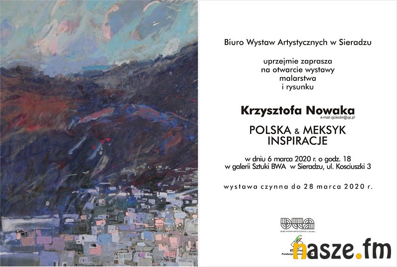 Biuro Wystaw Artystycznych w Sieradzu zaprasza jutro na otwarcie wystawy malarstwa i rysunku Krzysztofa Nowaka "Polska i Meksyk. Inspiracje". Wystawa będzie czynna do 28 marca.