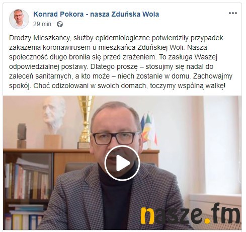 - Obserwując rozwój epidemii, spodziewaliśmy się, że ten moment nastąpi. Nasza społeczność długo broniła się przed zrażeniem. To zasługa Was samych, Waszej odpowiedzialnej postawy. Dlatego proszę – zachowajmy spokój, stosujmy się nadal do reżimu sanitarnego, a kto może – niech zostanie w domu. Ograniczenie kontaktów to dziś najlepszy sposób uchronienia się przed zarażeniem. Służby epidemiologiczne objęły ścisłą kwarantanną bliskich osoby zarażonej. Ona sama przebywa w szpitalu poza Zduńską Wolą. Wierzę, że choroba będzie miała u niej łagodny przebieg i liczę na szybki powrót do zdrowia - poinformował w mediach społecznościowych prezydent Zduńskiej Woli Konrad Pokora.