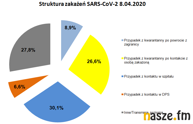 Struktura zakażeń SARS-CoV-2 (dane na dzień 8 kwietnia 2020 r.)