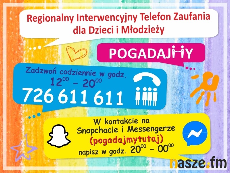 Pod numerem 726 611 611 ale także w mediach społecznościowych – na Messengerze i Snapchacie, przez siedem dni w tygodniu czuwa na zmiany sześcioro specjalistów - terapeutów, psychologów, pedagogów, interwentów kryzysowych. Służą pomocą i radą młodym ludziom, którzy nie radzą sobie w sytuacji, w jakiej się wszyscy znaleźliśmy, czyli z ograniczeniami wprowadzonymi w związku z epidemią koronawirusa.