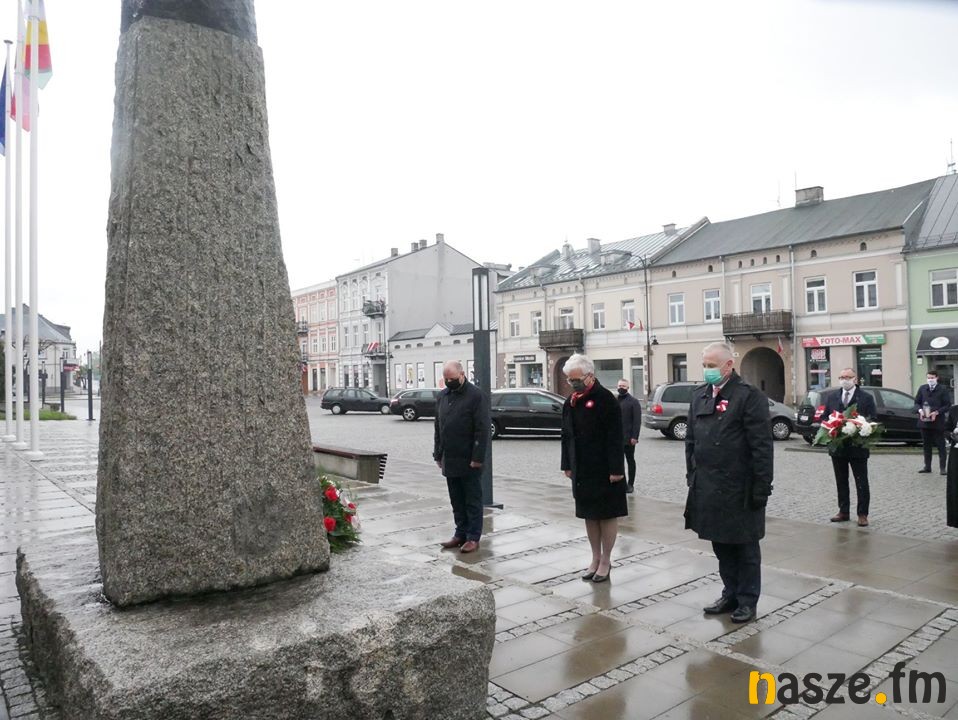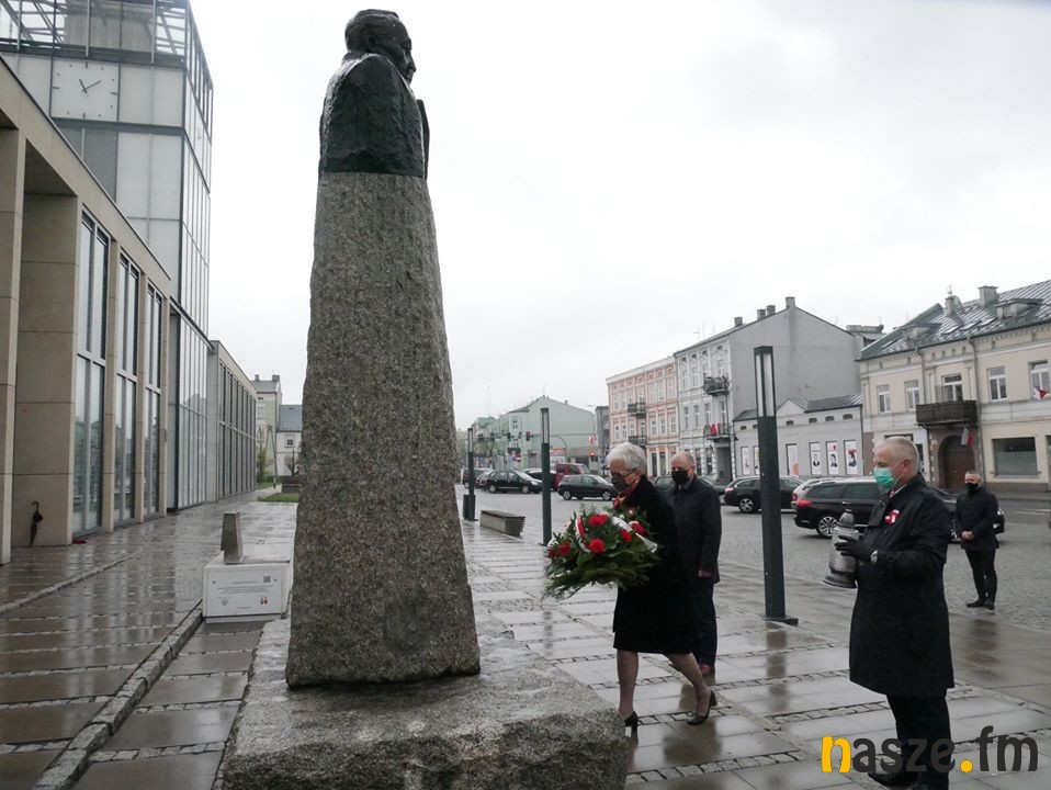 Hanna Iwaniuk, Starosta Zduńskowolski, Wojciech Rychlik, Wicestarosta Zduńskowolski i Marci Łabędzki, Etatowy członek Zarządu Powiatu Zduńskowolskiego w rocznicę uchwalenia Konstytucji 3 maja złożyli kwiaty przy pomniku Józefa Piłsudskiego.
