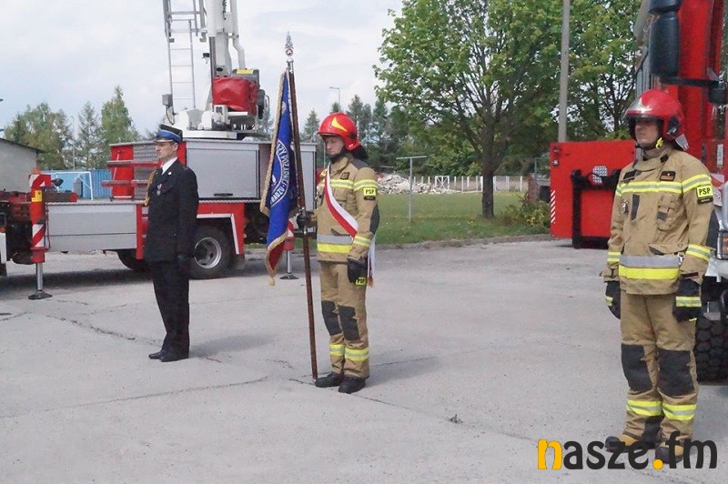 Symboliczną uroczystość zorganizowano przed Komendą Powiatową PSP w Sieradzu. Strażacy i to jedynie ci z dzisiejszej zmiany służbowej stanęli na zbiórce w odległości 2 m od siebie. Nie wręczano awansów i odznaczeń.