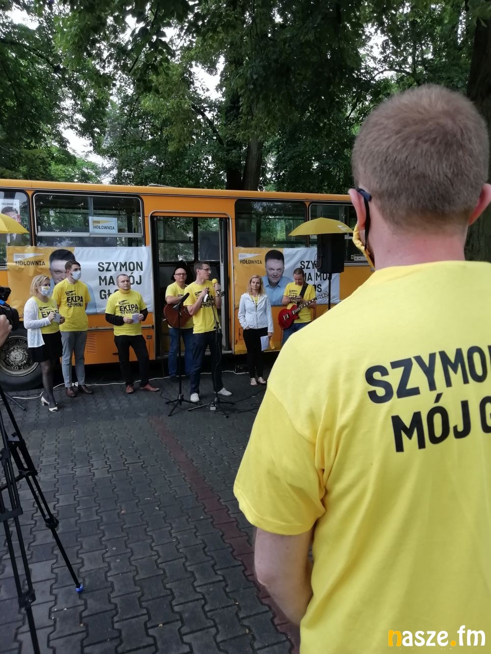 Wraz z nim pojawili się wolontariusze z Łodzi, którzy wraz z lokalnymi sympatykami rozmawiali o Szymonie, a także śpiewali piosenkę stworzoną na potrzeby oststniego tygodnia agitacji. Sobota była pierwszym dniem podróży IKARUSA po województwie, kiedy to odwiedził jeszcze m.in. Łask czy Bełchatów.