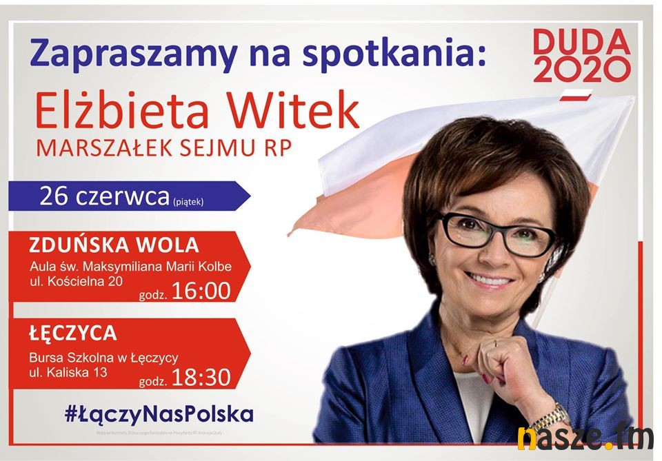 Marszałek Sejmu RP Elżbieta Witek odwiedzi dzisiaj, 26 czerwca, Zduńską Wolę. Spotka się z mieszkańcami w auli ośrodka św. Maksymiliana Marii Kolbe przy ul. Kościelnej.
