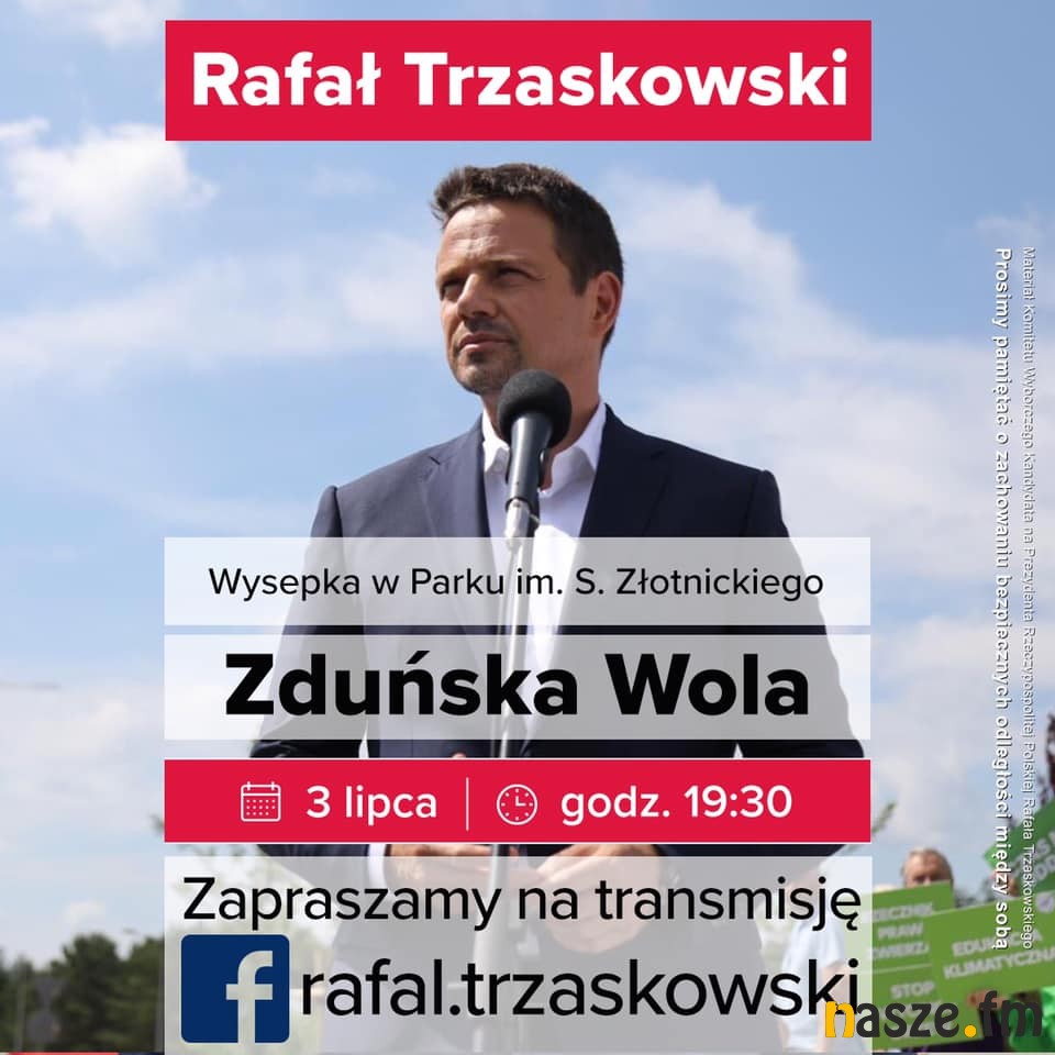 Zduńską Wolę odwiedzi dziś - 3 lipca - Rafał Trzaskowski. Z kandydatem na urząd prezydenta RP z ramienia Koalicji Obywatelskiej będzie można spotkać się na wysepce w Parku Miejskim.