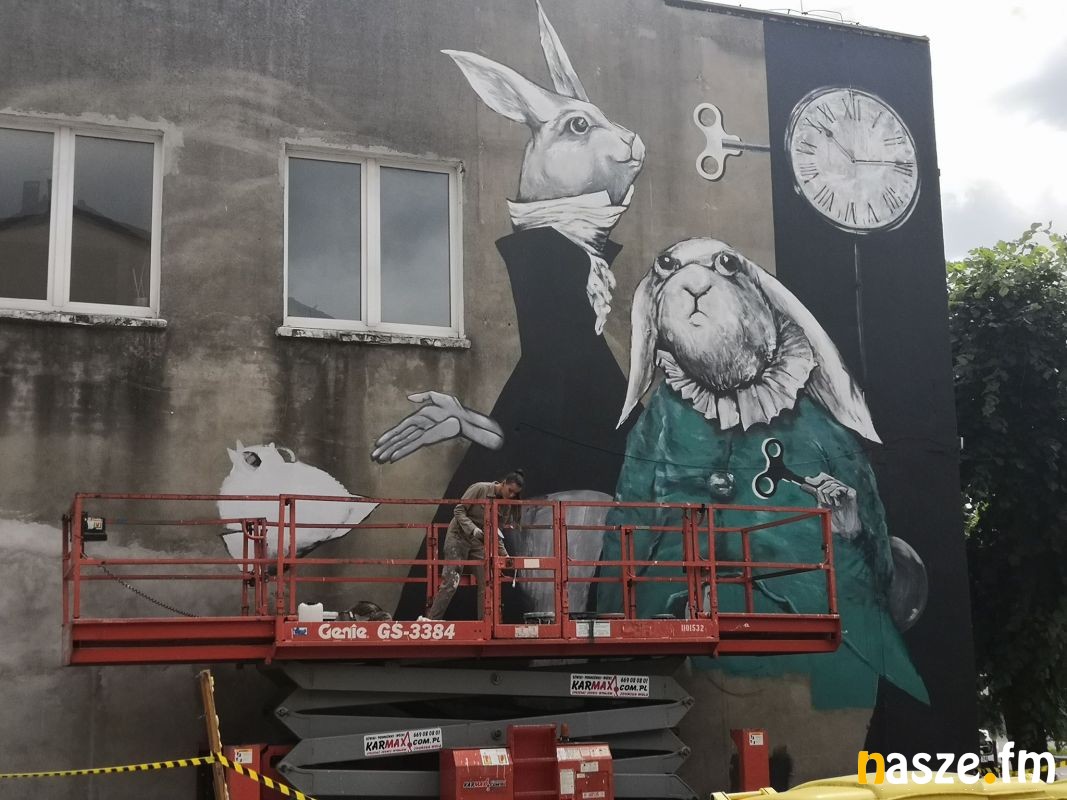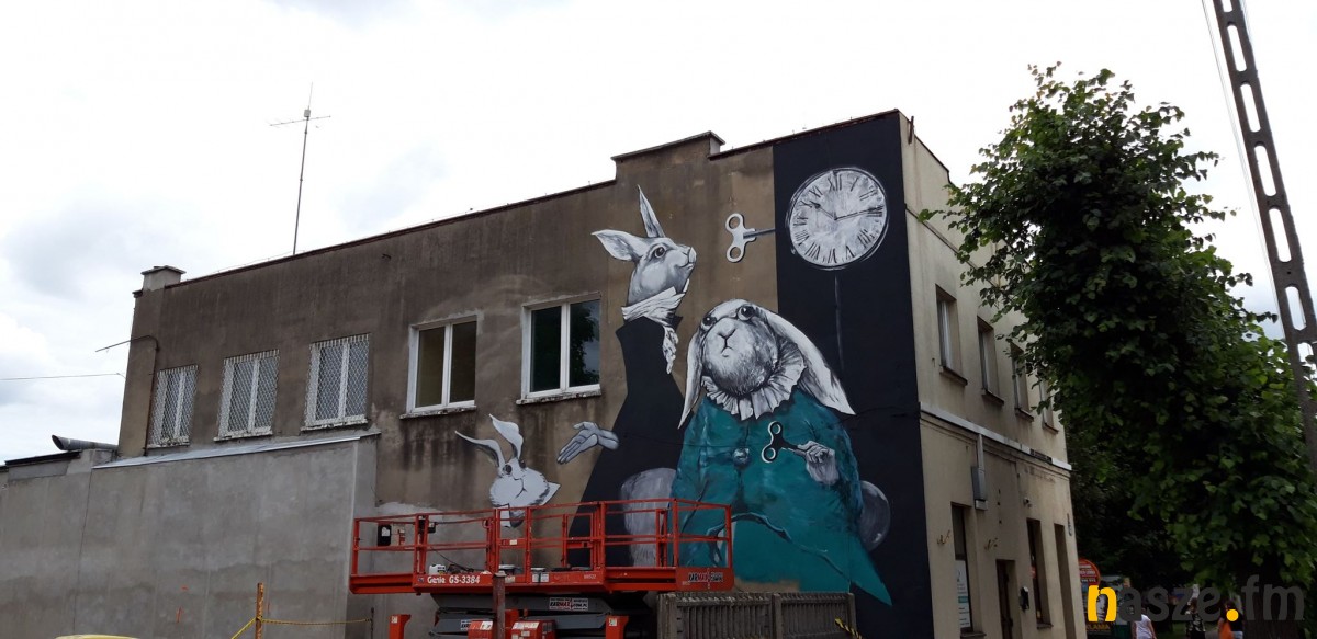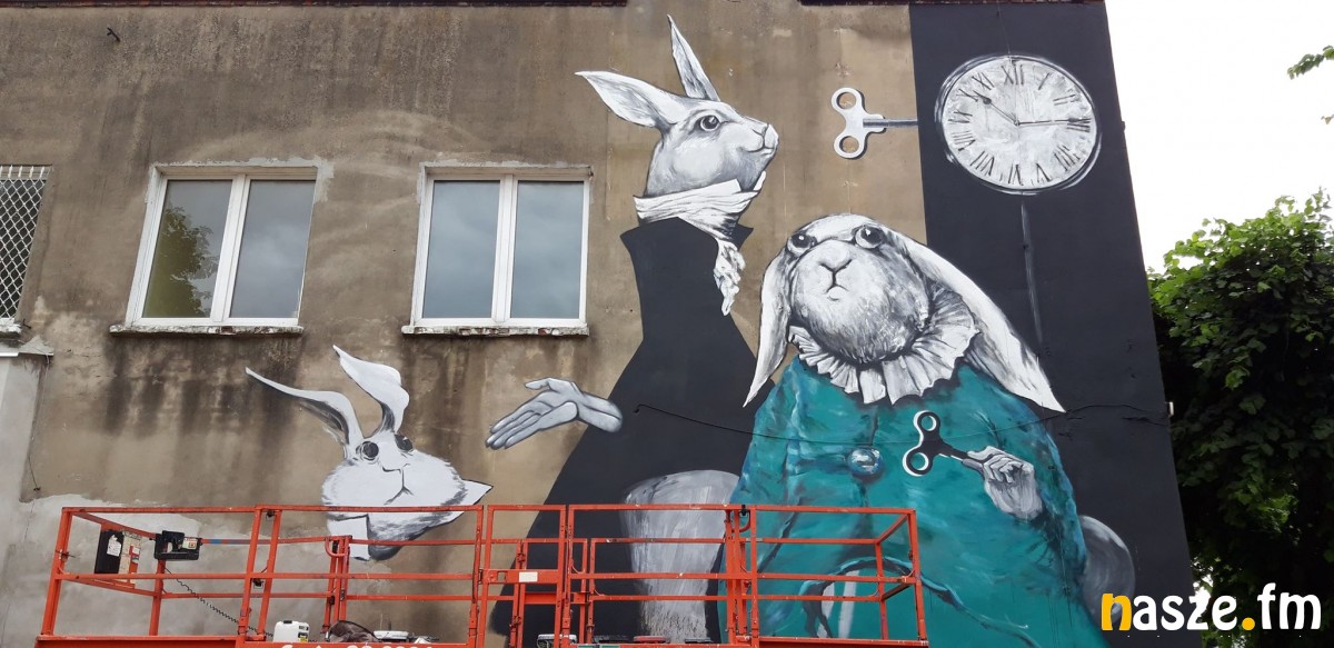 - Nowy mural przedstawia trzy króliki. Wykonuję projekt Pani Eli Biryło na zlecenie Towarzystwa Budownictwa Społecznego "Złotnicki" - mówi wykonawczyni projektu Karolina Treler.